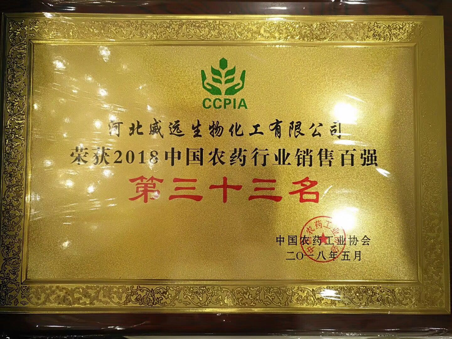 5月16日,2018年中國(guó)農(nóng)藥行業(yè)銷(xiāo)售百?gòu)?qiáng)企業(yè)榜單在“第五屆農(nóng)藥行業(yè)經(jīng)濟(jì)運(yùn)行分析會(huì)”上隆重發(fā)布并為獲獎(jiǎng)企業(yè)頒發(fā)牌匾,我公司河北威遠(yuǎn)生物化工有限公司2017年度開(kāi)拓進(jìn)取,穩(wěn)扎穩(wěn)打,以12.715億銷(xiāo)售額榮獲第33位。公司自成立起來(lái),五年五大步,實(shí)現(xiàn)連續(xù)增長(zhǎng),與2015年相比,銷(xiāo)售額同比大幅增長(zhǎng)42%,排名上升10位。